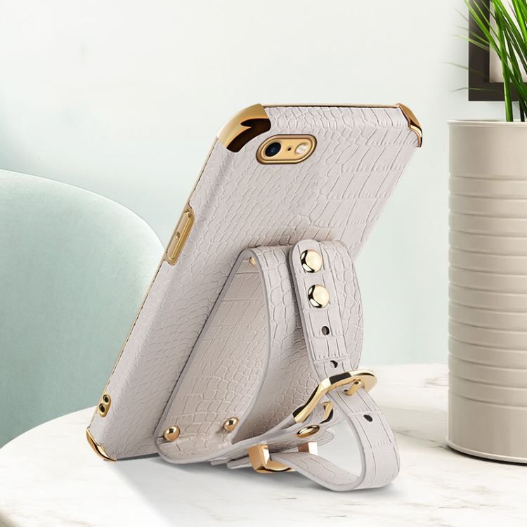 Funda TPU Electrochapada Piel Cocodrilo con Correa para iPhone 6 (Blanco)