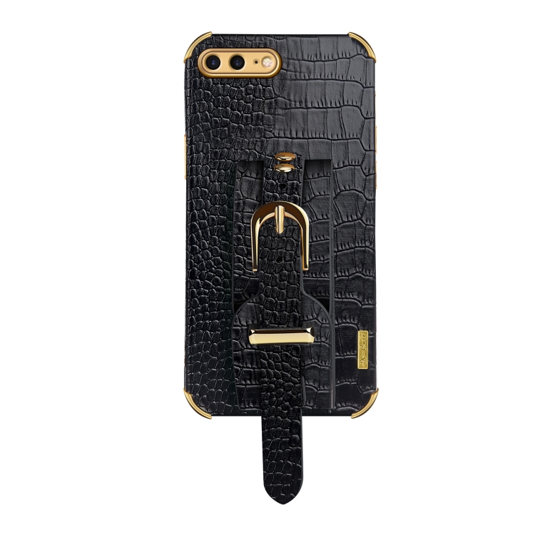Funda TPU Electroplated con Patrón Cocodrilo y Correa para iPhone 8 Plus / 7 Plus (White)