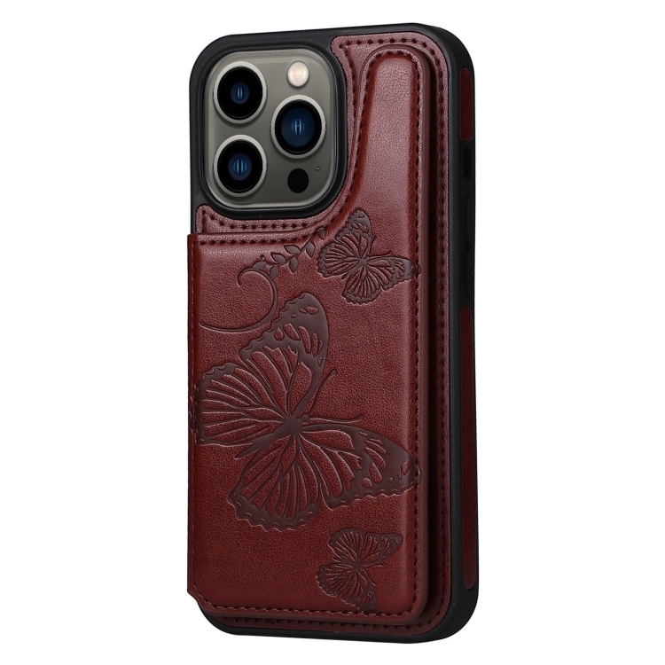 Estuche a Prueba de Golpes para iPhone 13 Pro Patrón Estampado Mariposas (Brown)