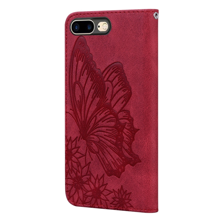 Retro Butterfly Pattern Skin Feel Horizontal Flip Leather Case with Holder & Card Slots & Wallet for iPhone 6 Plus / 6s Plus (Red)