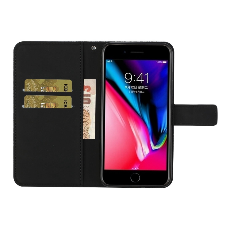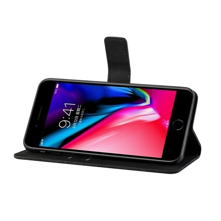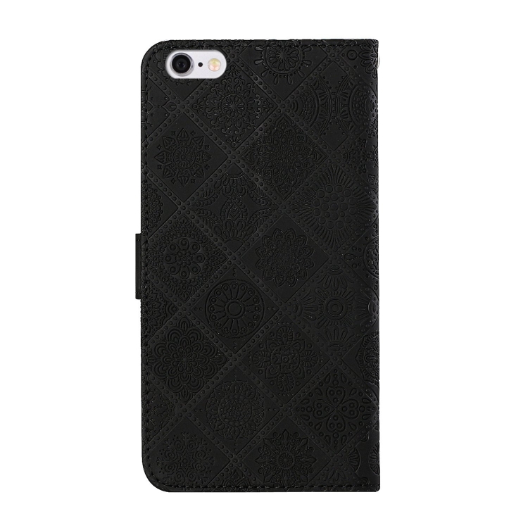 Estuche de Cuero iPhone 6 Tapa Horizontal Patrón Étnico Soporte Ranuras Tarjetas Billetera (Negro)