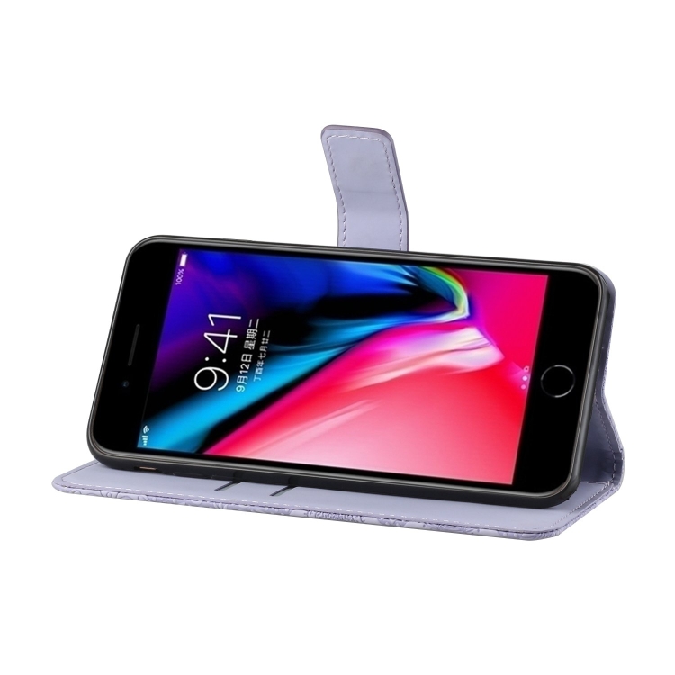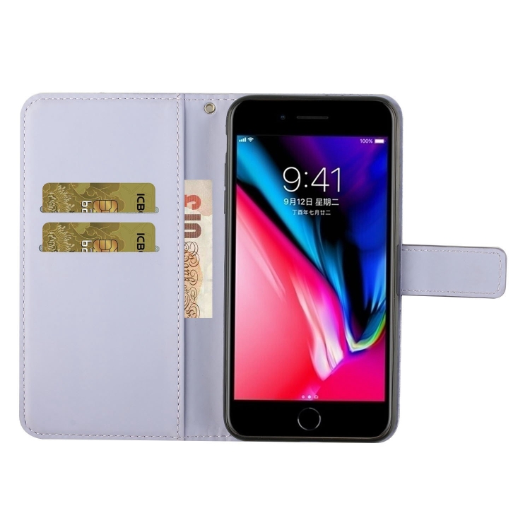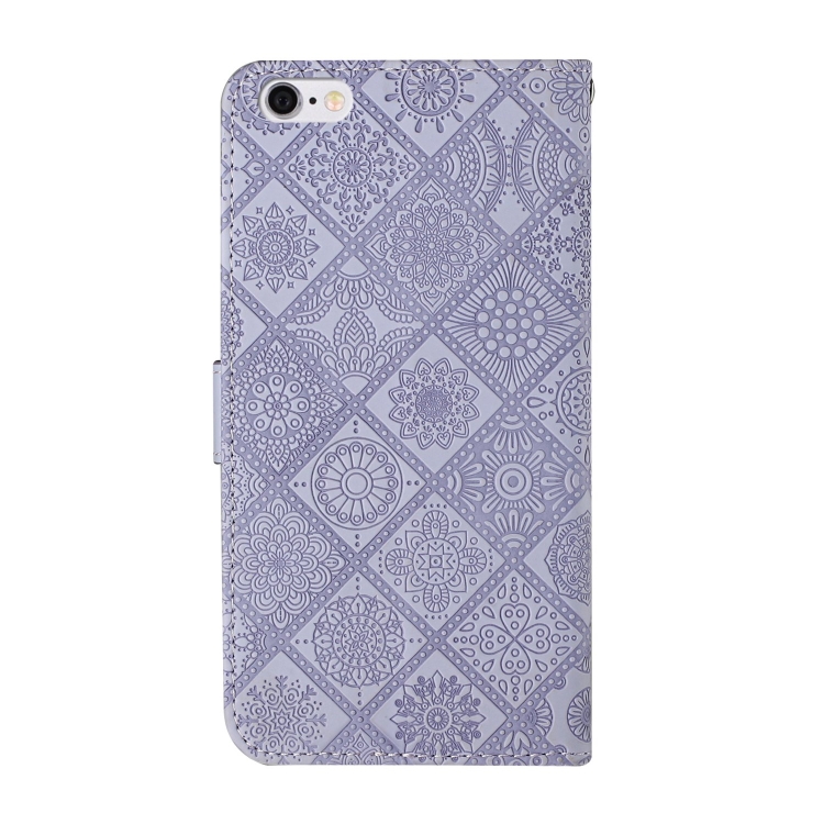 Estuche de Cuero iPhone 6 Tapa Horizontal Patrón Étnico Soporte Ranuras Billetera Cordón (Púrpura)