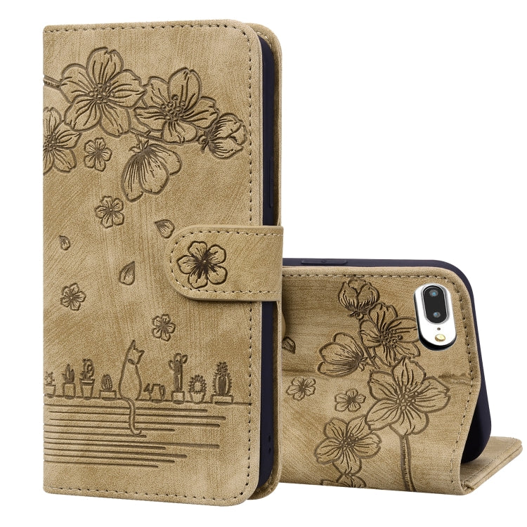 Estuche de Cuero Sakura Cat para iPhone 7 Plus y 8 Plus (Marrón)