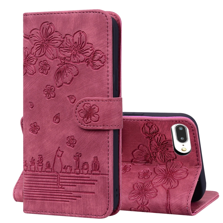 Estuche de Cuero Sakura Cat para iPhone 7 Plus y 8 Plus (Rojo Vino)