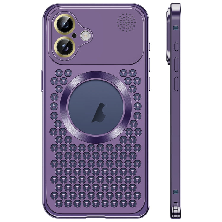 Estuche Magnético de Metal para iPhone 16 con Aromaterapia y Hebilla de Resorte (Morado)