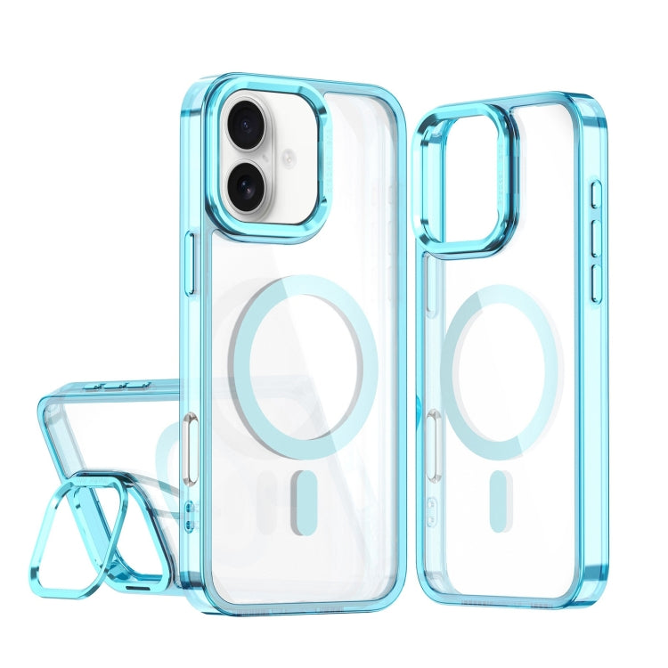 Estuche Magnético para Teléfono Magsafe con Soporte para Cámara de Acrílico para iPhone 16 (Azul)