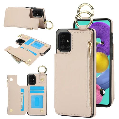 Estuche para Teléfono Samsung Galaxy A51 4G Rfld con Cremallera y Anillo de Doble Hebilla Antirrobo (Blanco)