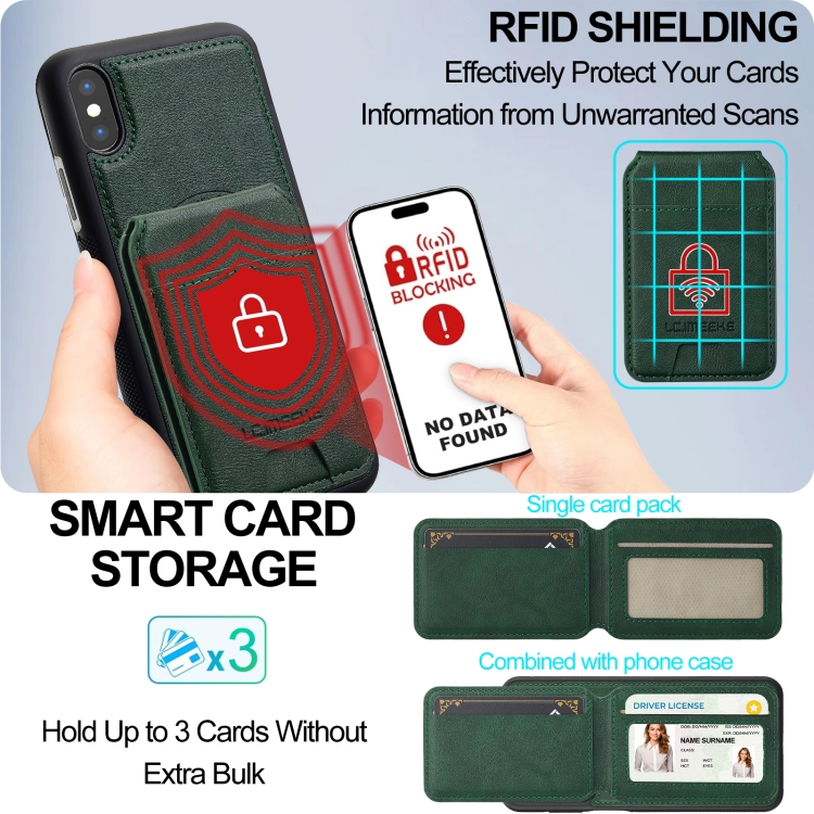 Estuche para Teléfono Lc.Imeeke Serie L3 con Funda Tarjeta Rfid Desmontable Magsafe para iPhone Xs/X (Verde)