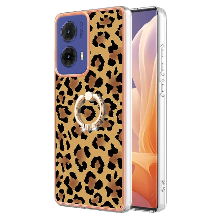 Estuche para Teléfono Motorola Moto G85 con Galvanoplastia Imd Doble Cara y Soporte para Anillo (Leopardo)