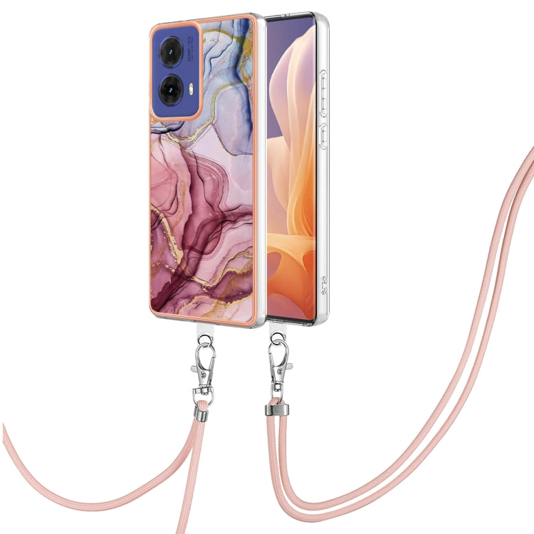 Estuche para Teléfono Motorola Moto G85 con IMD Doble Cara y Galvanoplastia Mármol con Cordón (Rojo Rosa)