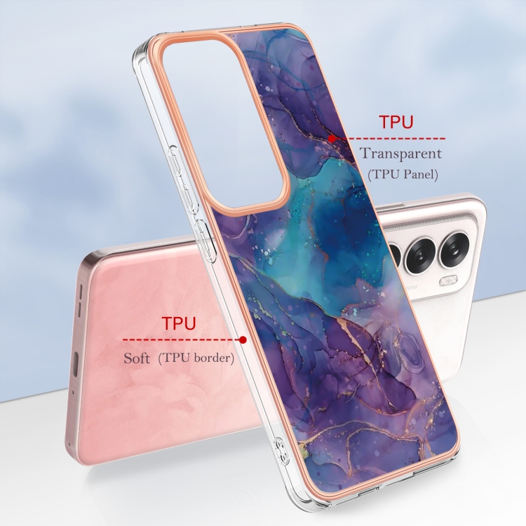 Estuche para Teléfono con Imd de Doble Cara con Galvanoplastia de Mármol para Oppo Reno12 Global (Púrpura 016)