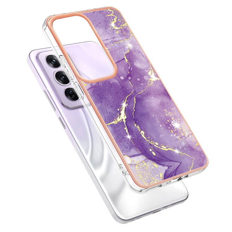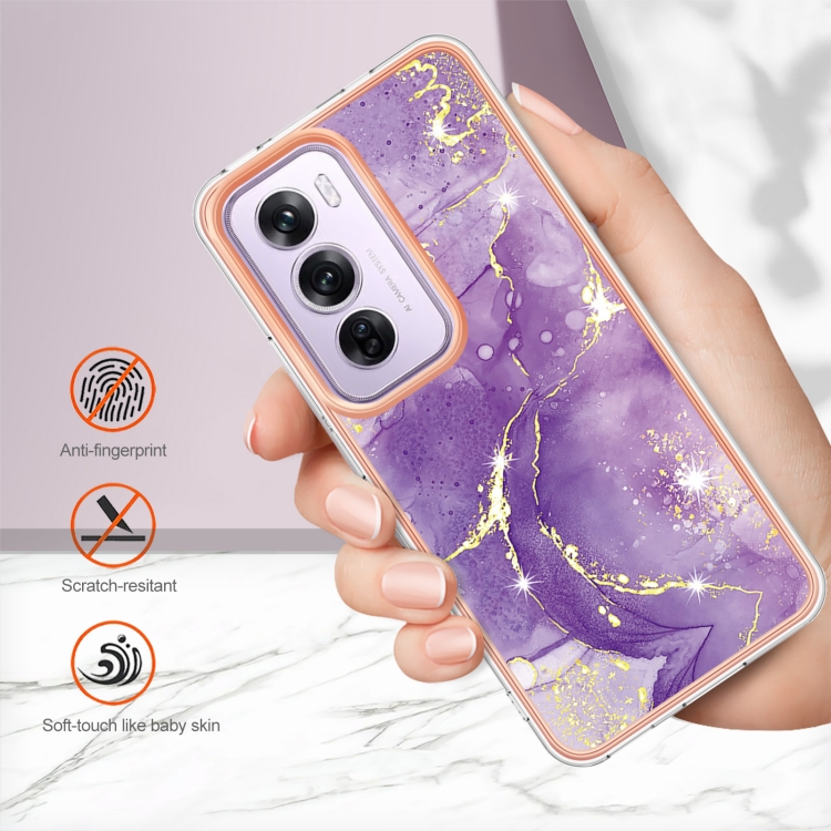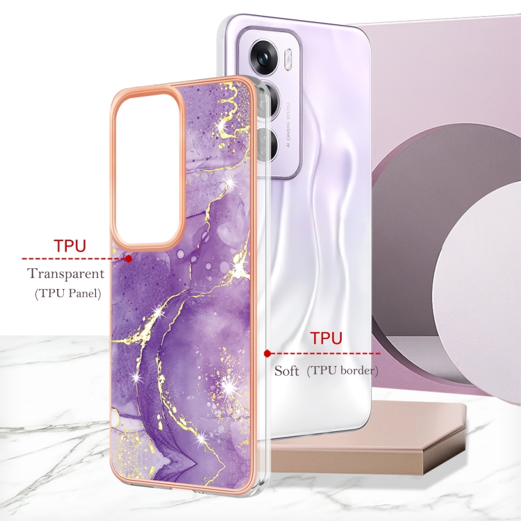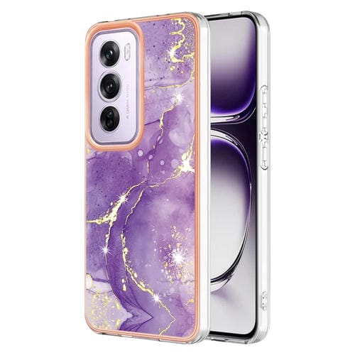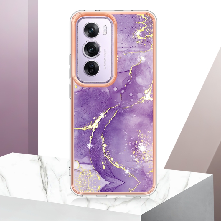 Estuche para Teléfono con Imd de Doble Cara con Galvanoplastia Global de Mármol para Oppo Reno12 Pro (Púrpura 002)