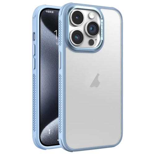 Estuche para Teléfono iPhone 15 Pro Marco de Lente Metal Esmerilado Sensación de Piel Enfriamiento Lateral (Azul Cielo)
