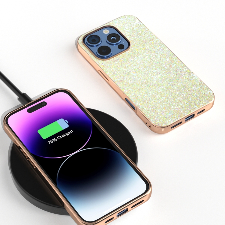 Estuche para Teléfono iPhone 16 Pro Marco Galvanizado Purpurina (Dorado)