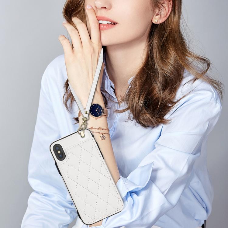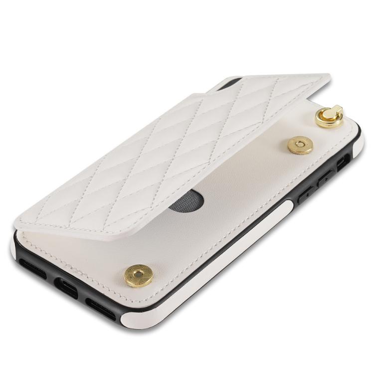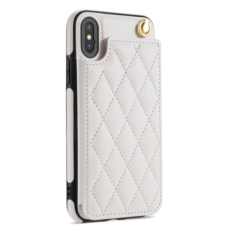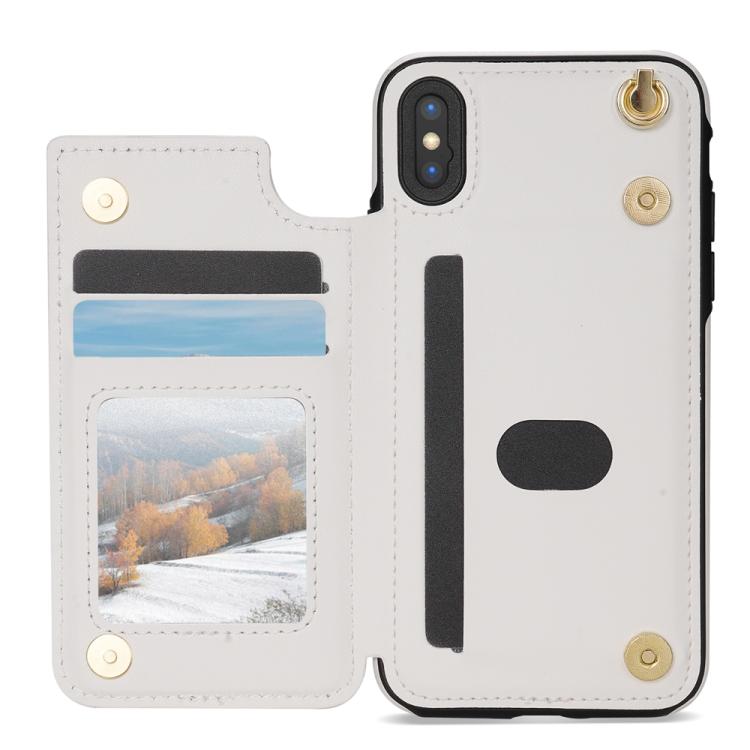 Estuche para Teléfono Rombal iPhone X/Xs con Ranuras y Hebilla Doble (Blanco)