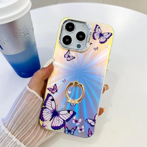 Estuche para Teléfono iPhone 15 Pro Soporte de Anillo Mariposa Galvanoplastia Láser