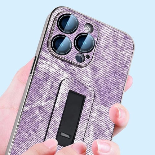 Estuche para Teléfono iPhone 13 Pro Max con Soporte Empuje Tracción Galvanizado (Gris Azul)