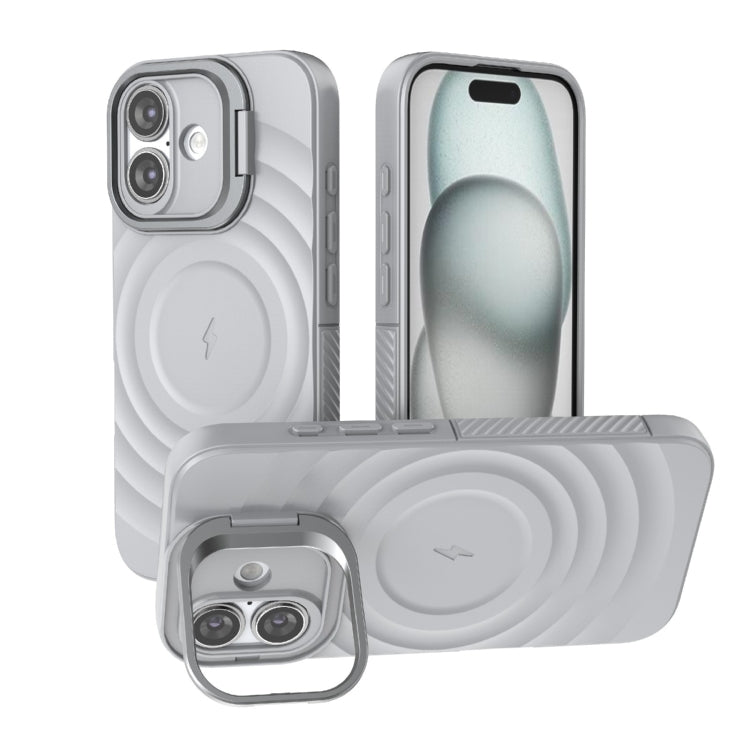 Estuche para Teléfono Magsafe iPhone 16 Soporte Marco Lente Corrugado (Gris)