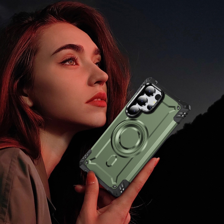 Estuche para Teléfono Samsung Galaxy S24 Ultra 5G con Soporte para Lente Magsafe (Verde Militar)