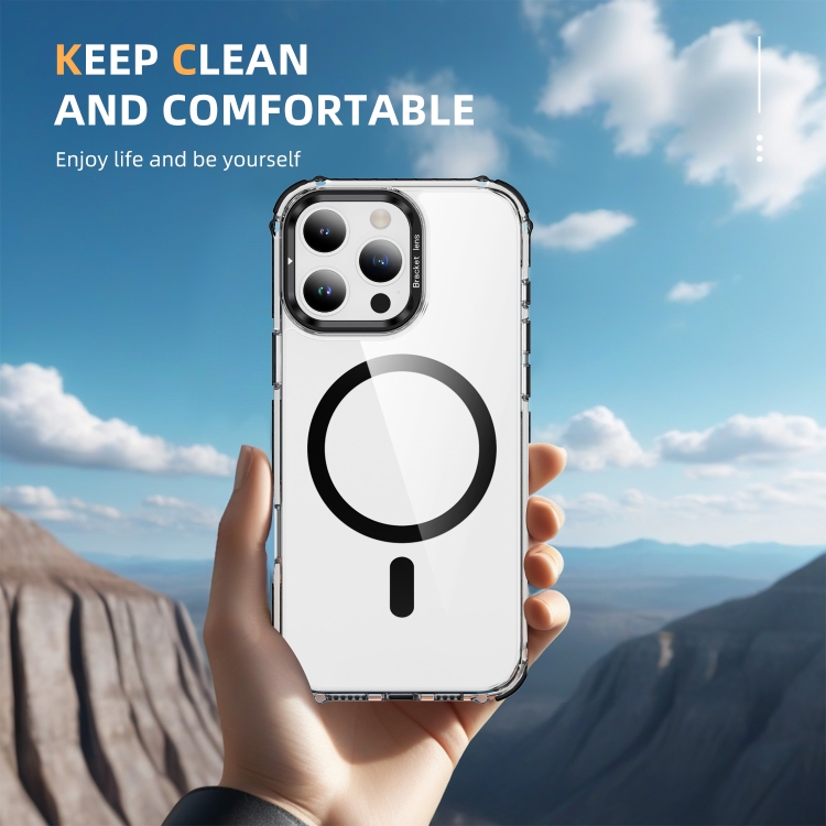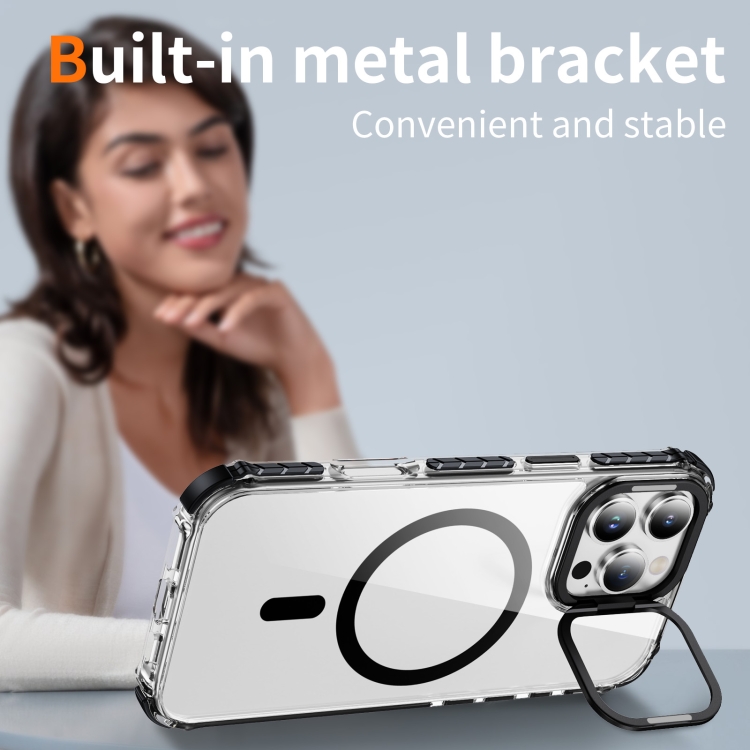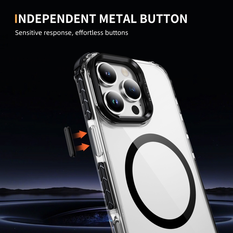 Estuche para Teléfono con Soporte para Lente Magsafe Serie Rainbow para iPhone 16 Pro Max (Negro)
