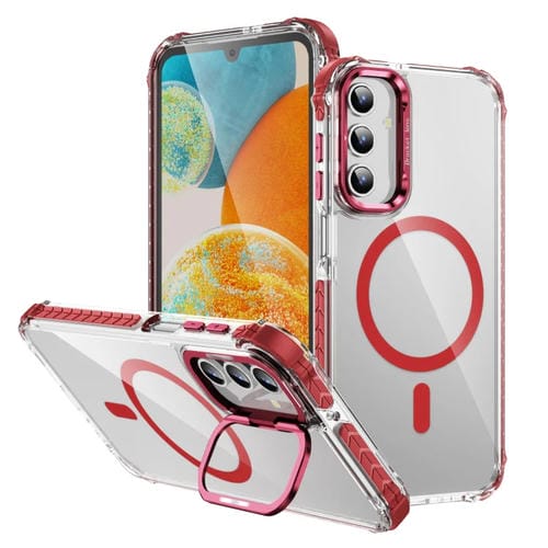 Estuche para Teléfono Samsung Galaxy A15 Soporte Lente Magsafe Serie Rainbow (Rojo)