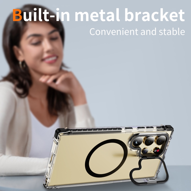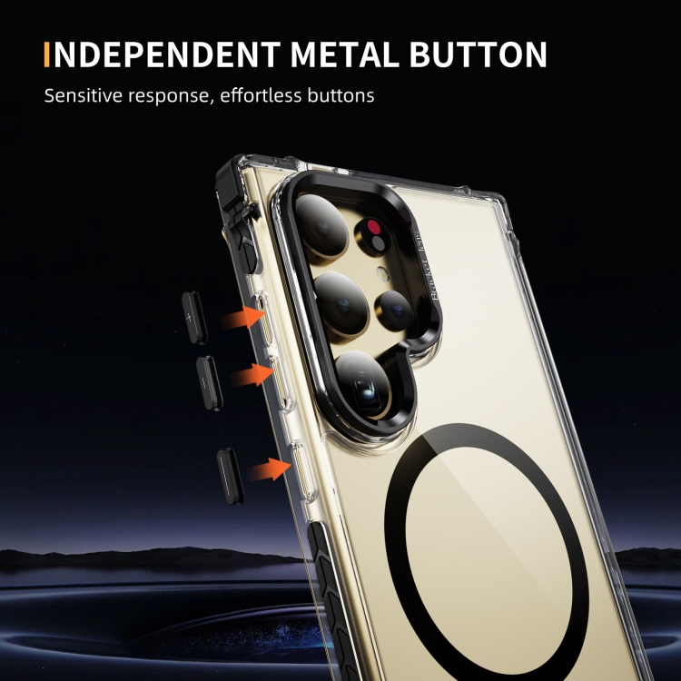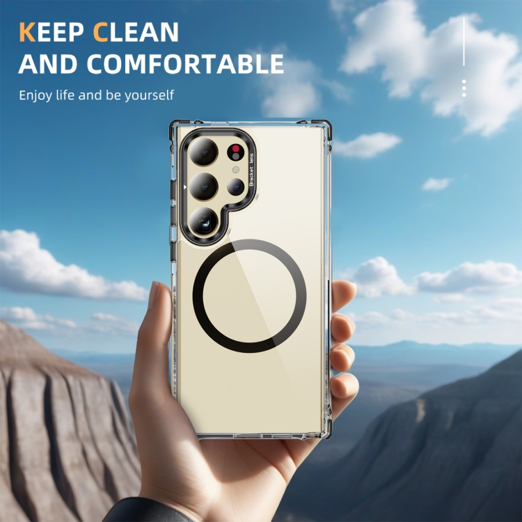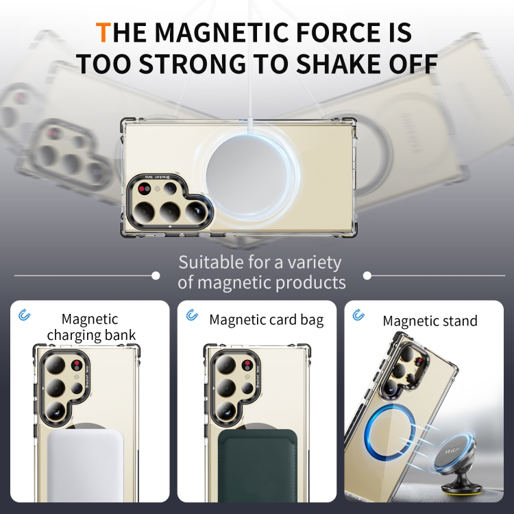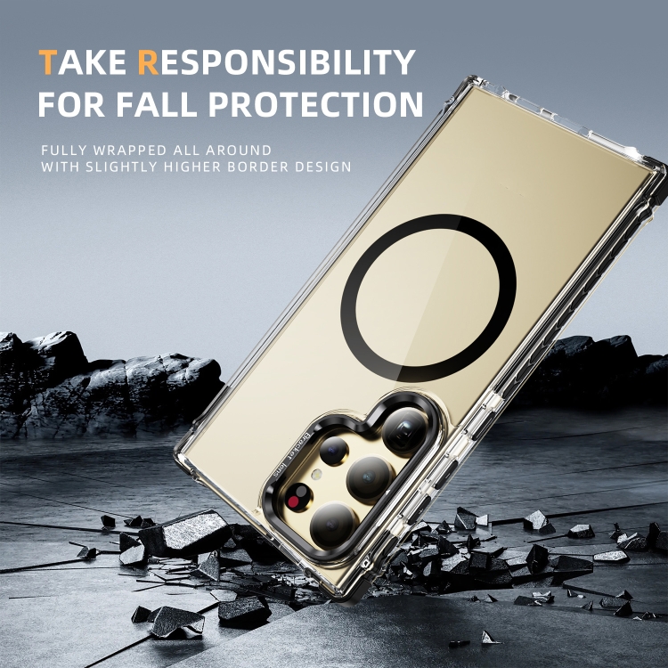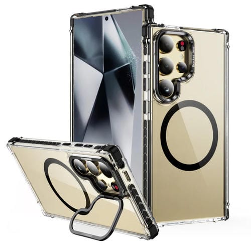 Estuche para Teléfono Samsung Galaxy S24 Ultra 5G con Soporte para Lente Magsafe Transparente (Negro)