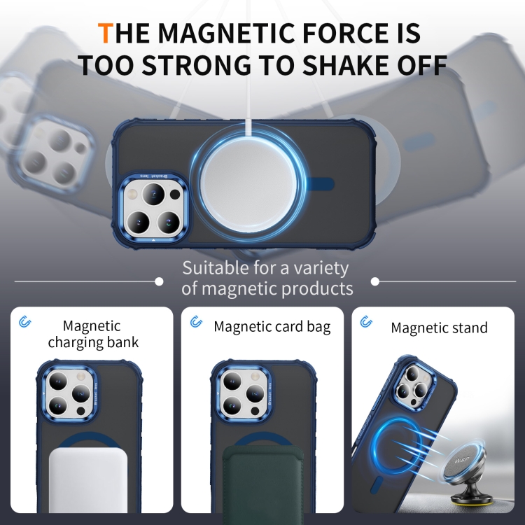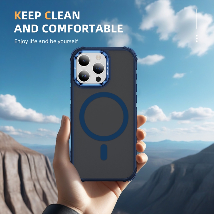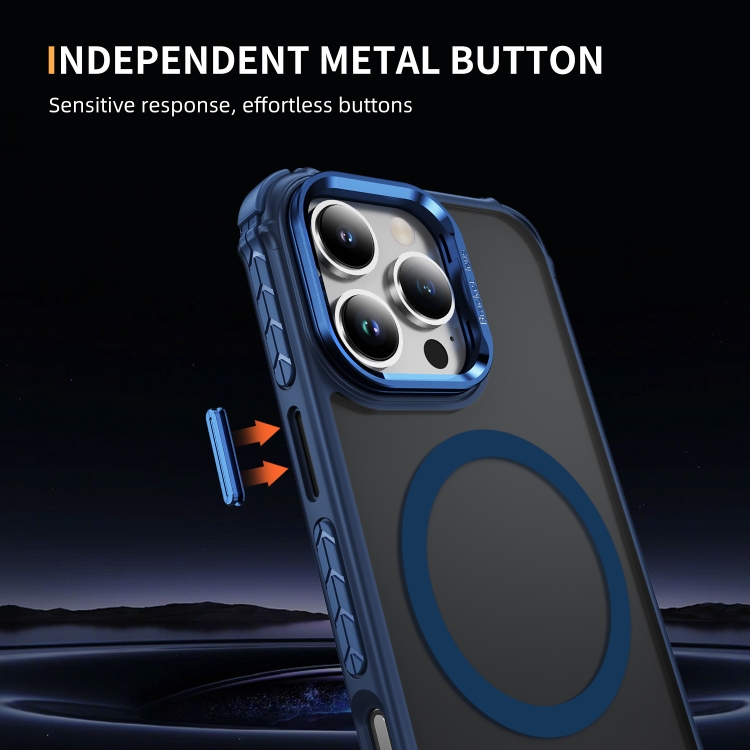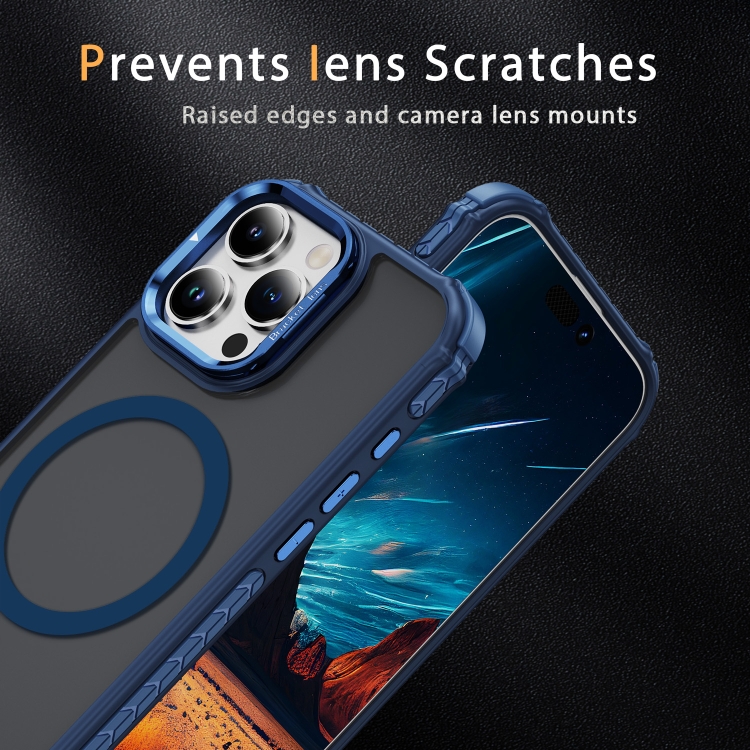 Estuche para Teléfono iPhone 16 Pro Max con Soporte para Lentes Magsafe y Tacto de Piel (Azul)
