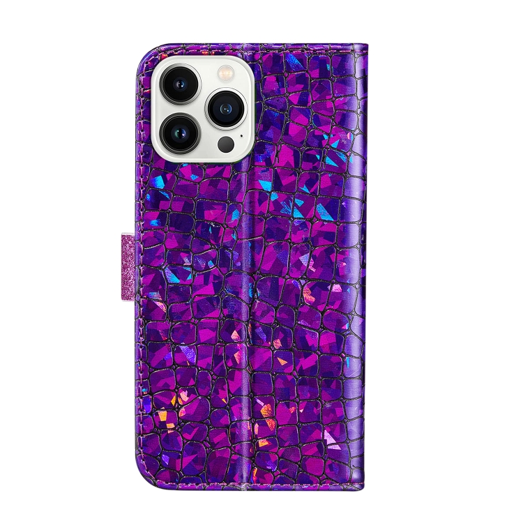 Estuche para Teléfono Cuero Textura Cocodrilo iPhone 14 Pro (Púrpura)