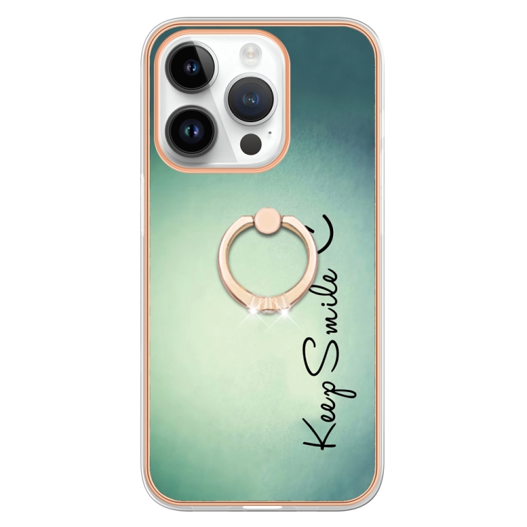 Estuche para Teléfono Imd Doble Cara con Galvanoplastia y Soporte para Anillo para iPhone 16 Pro (Sonrisa)