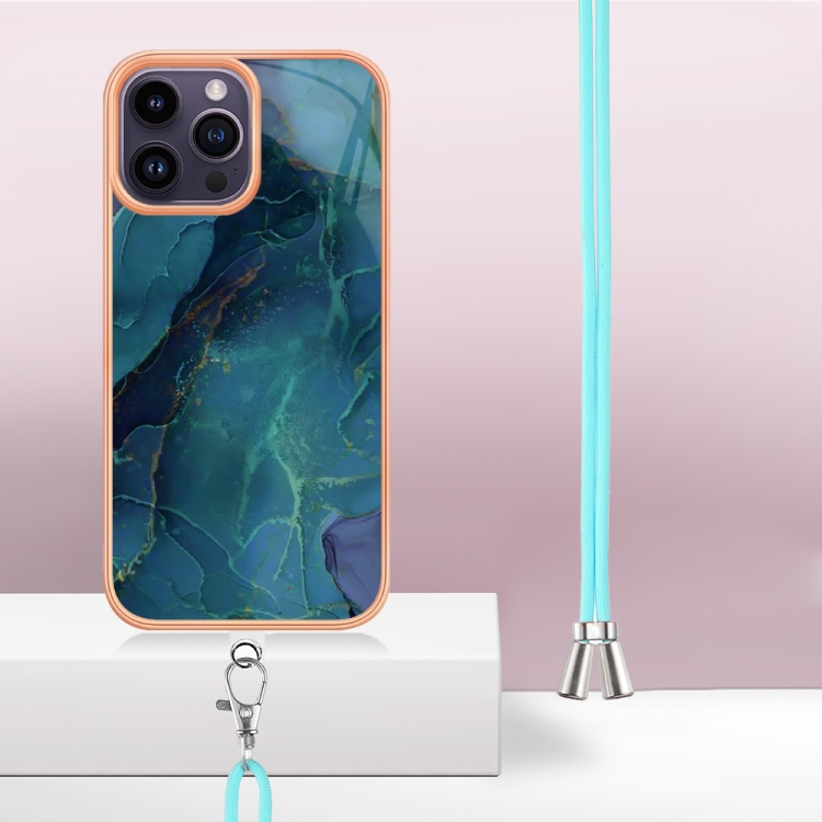 Estuche para Teléfono IMD Doble Cara Mármol Galvanizado iPhone 16 Pro con Cordón (Verde)