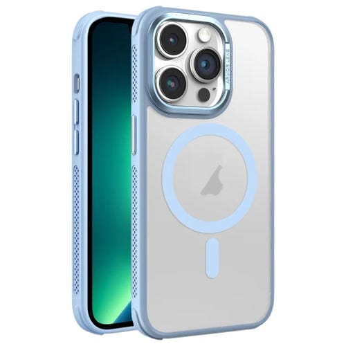 Estuche para Teléfono Magsafe iPhone 13 Pro Max Marco de Lente Metal Esmerilado Sensación Piel Enfriamiento Lateral (Azul Cielo)