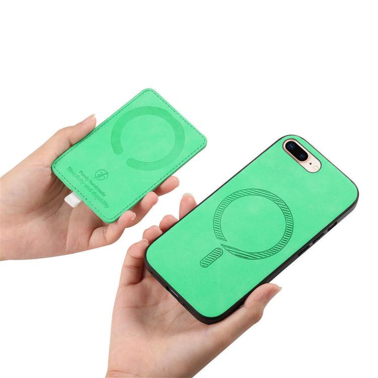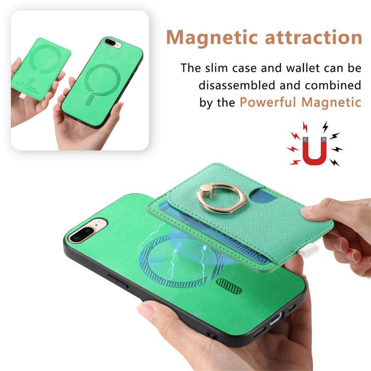 Estuche para Teléfono Magsafe Cuero con Ranuras y Anillo Lateral para iPhone 7 Plus/8 Plus (Verde)
