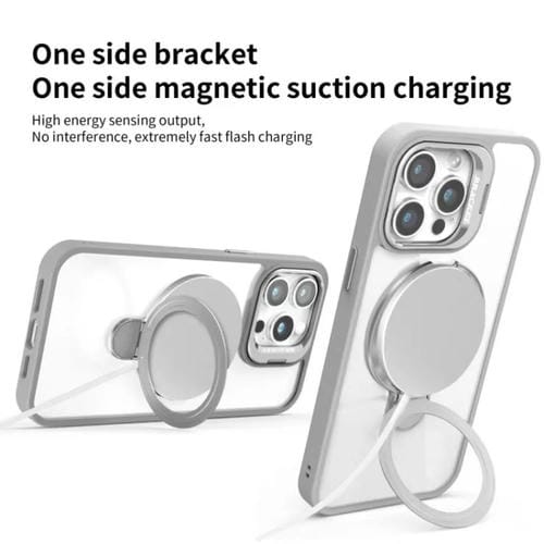 Estuche para Teléfono Magsafe con Soporte de Anillo y Protección de Lente para iPhone 13 Pro Max (Gris)