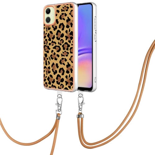 Estuche para Teléfono Samsung Galaxy A06 4G Imd Doble Cara Galvanoplastia con Cordón (Estampado de Leopardo)