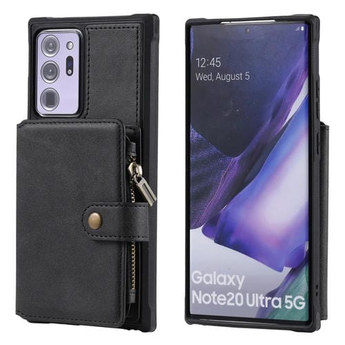 Estuche Protector Samsung Galaxy Note20 Ultra con Cremallera Ranuras Tarjetas Soporte Fotos Billetera (Negro)
