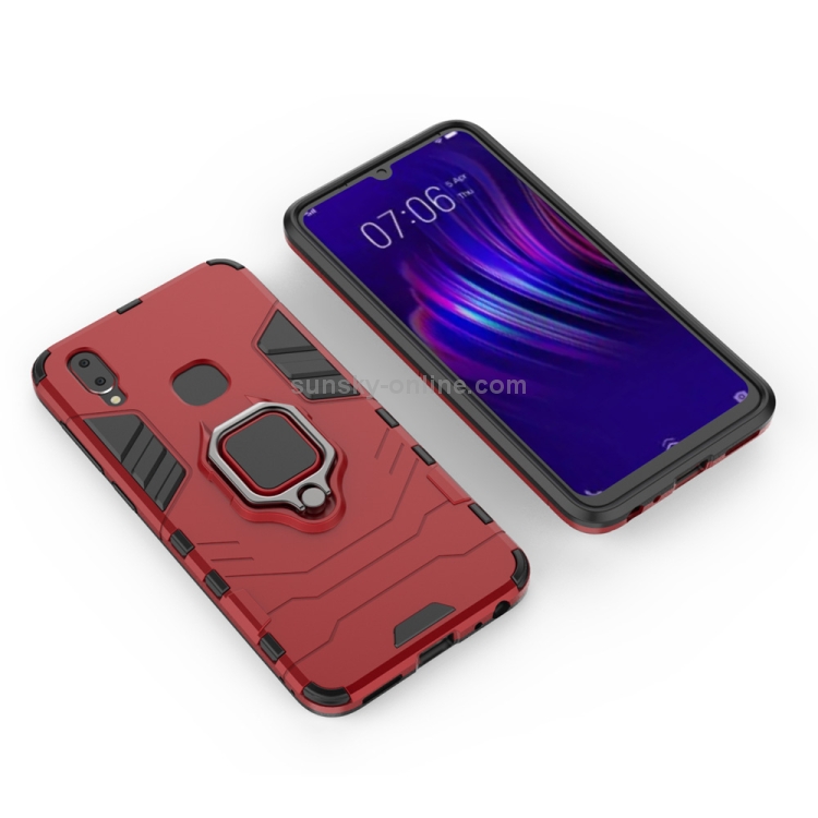 Estuche Protector PC + TPU a Prueba de Golpes para Vivo V11I, con Soporte de Anillo Magnético (Rojo)