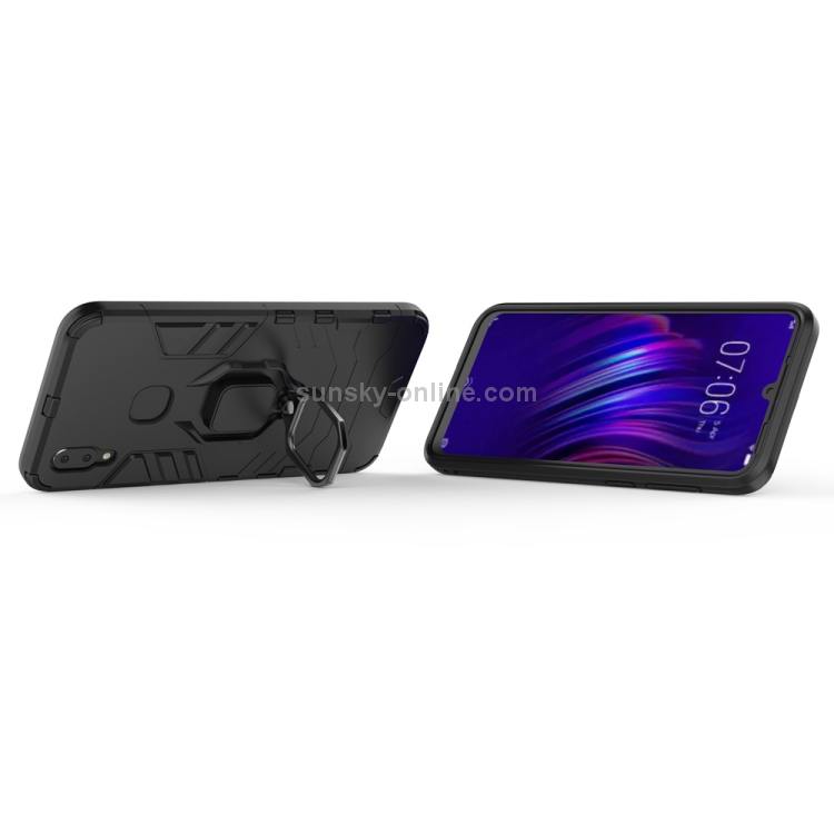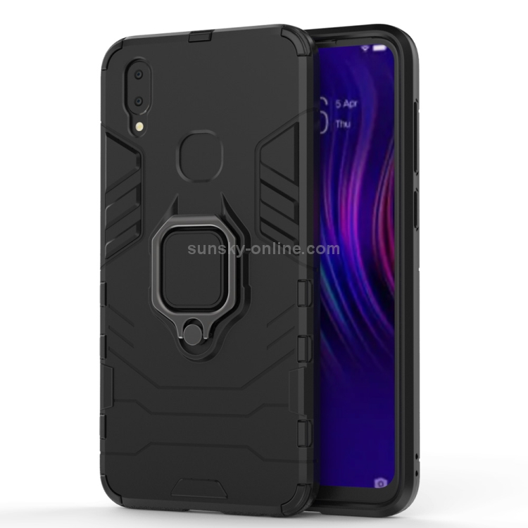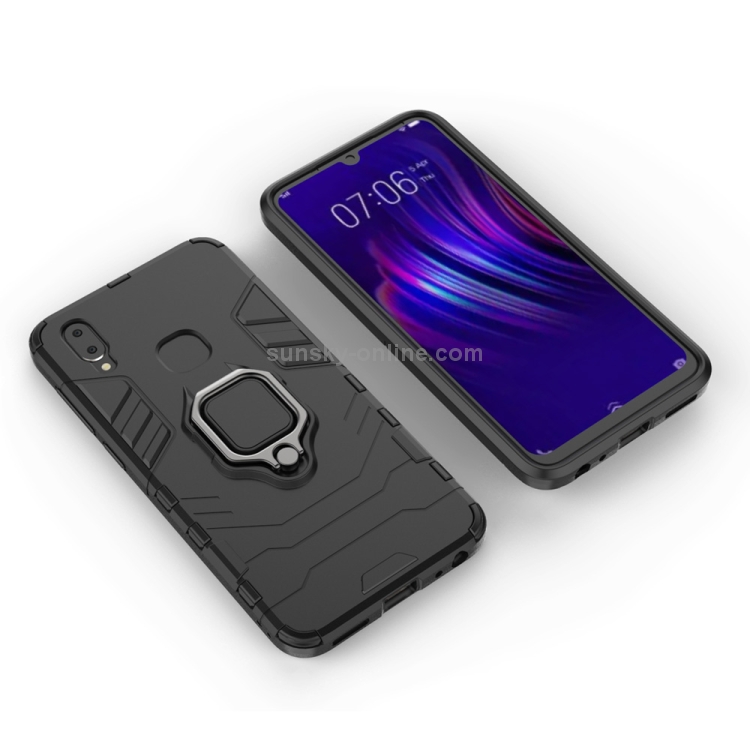 Estuche Protector PC + TPU a Prueba de Golpes para Vivo V11I, con Soporte para Anillo Magnético (Negro)