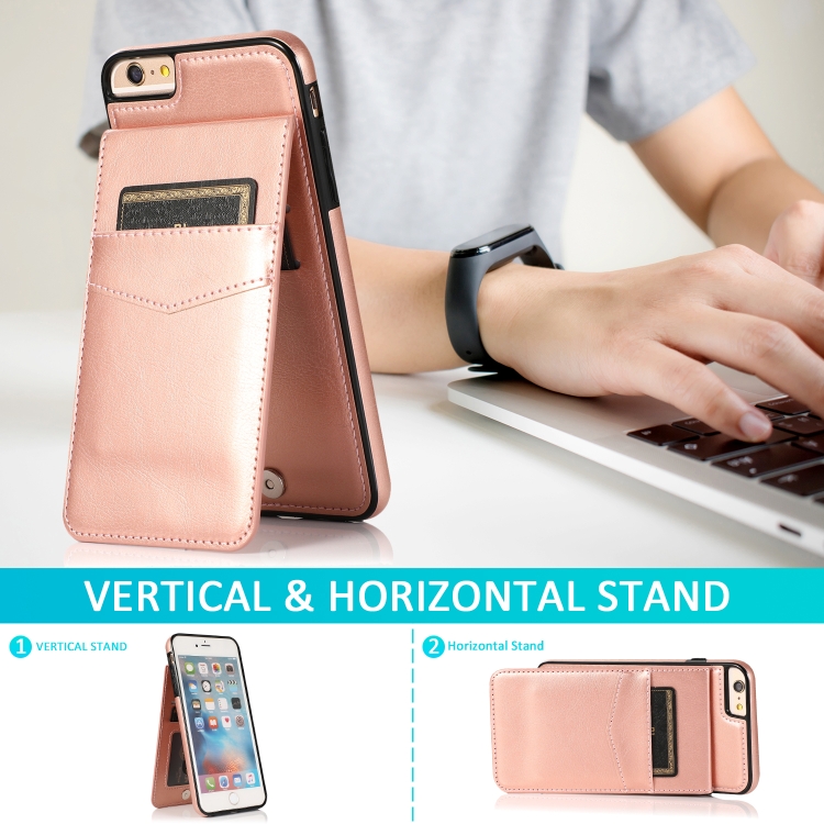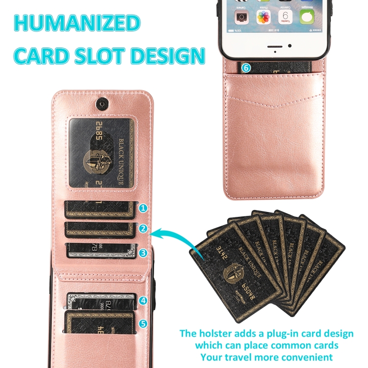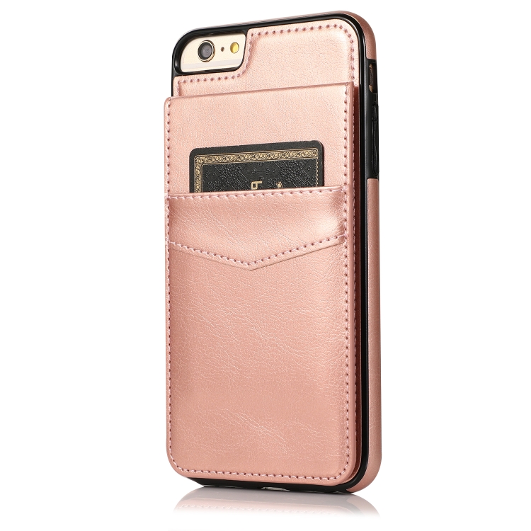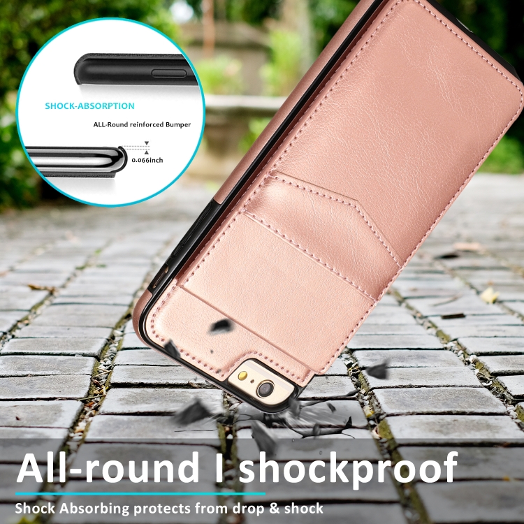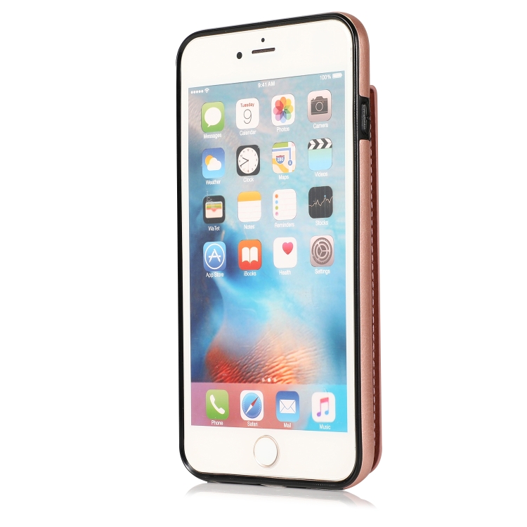 Estuche Protector PC + TPU para iPhone 6 con Soporte y Ranuras para Tarjetas (Oro Rosa)