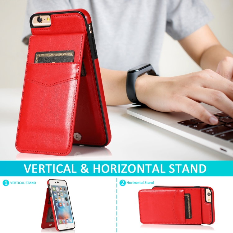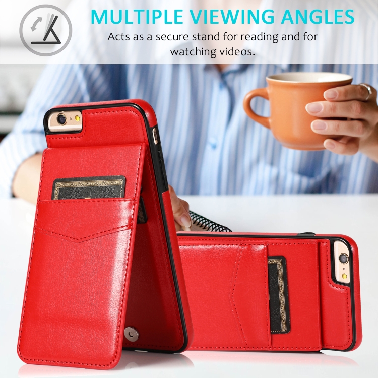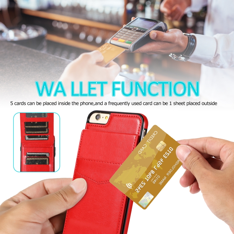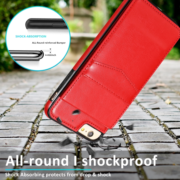 Estuche Protector PC + TPU para iPhone 6 con Soporte y Ranuras para Tarjetas (Rojo)