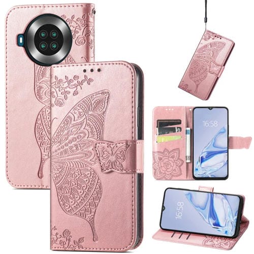 Funda de Cuero Flores de Amor Mariposa para Cubot Note 20 con Soporte y Ranuras (Oro Rosa)