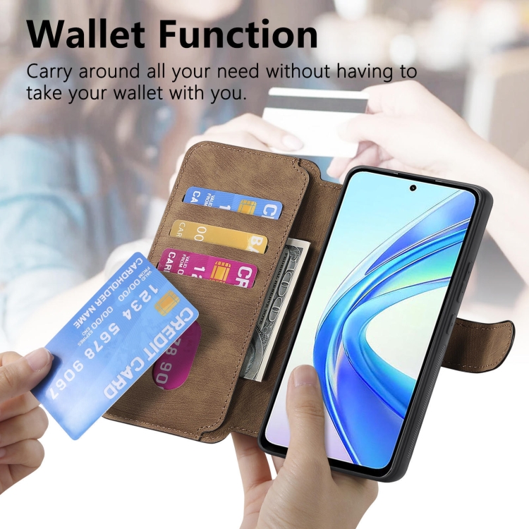 Funda para Teléfono For Honor X7B Caseneo Magsafe Rfid Cuero Retro Antirrobo (Marrón)