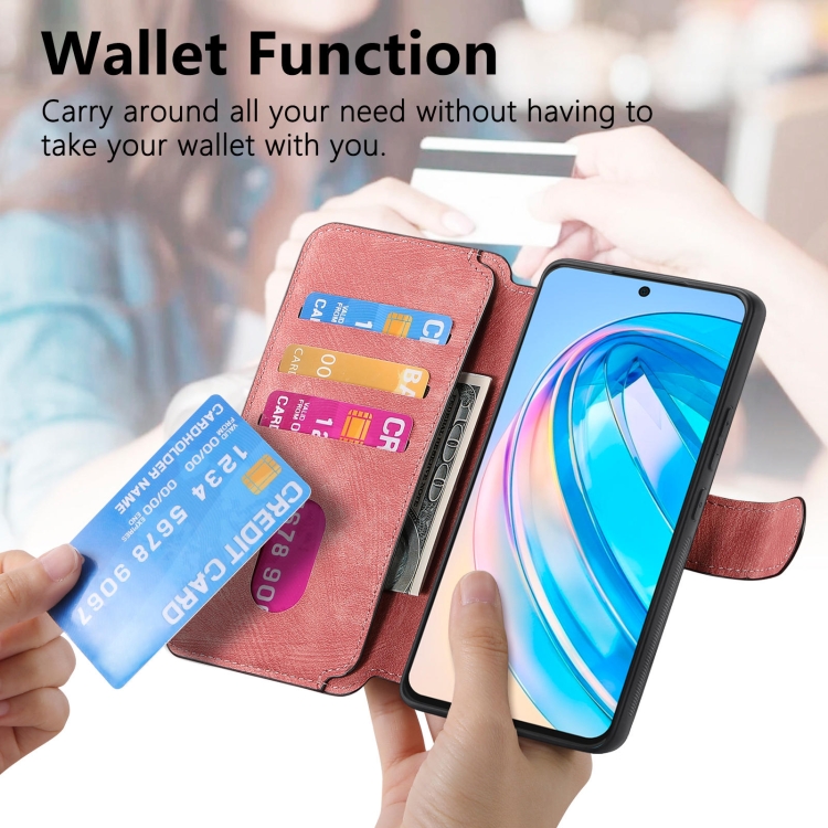Funda de Cuero Retro Antirrobo Caseneo Magsafe Rfid para For Honor X8A (Rosa)