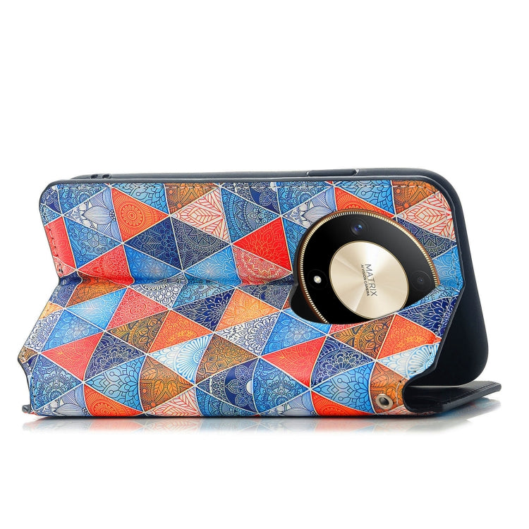 Estuche de Cuero Magnético For Honor X9B Caseneo Colorido para Teléfono (Rombo Mandala)