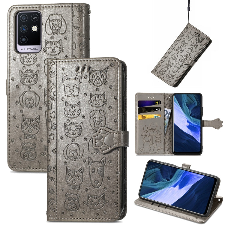 Funda Cuero Horizontal para Infinix Note 10 con Soporte, Ranuras y Cordón (Gris)