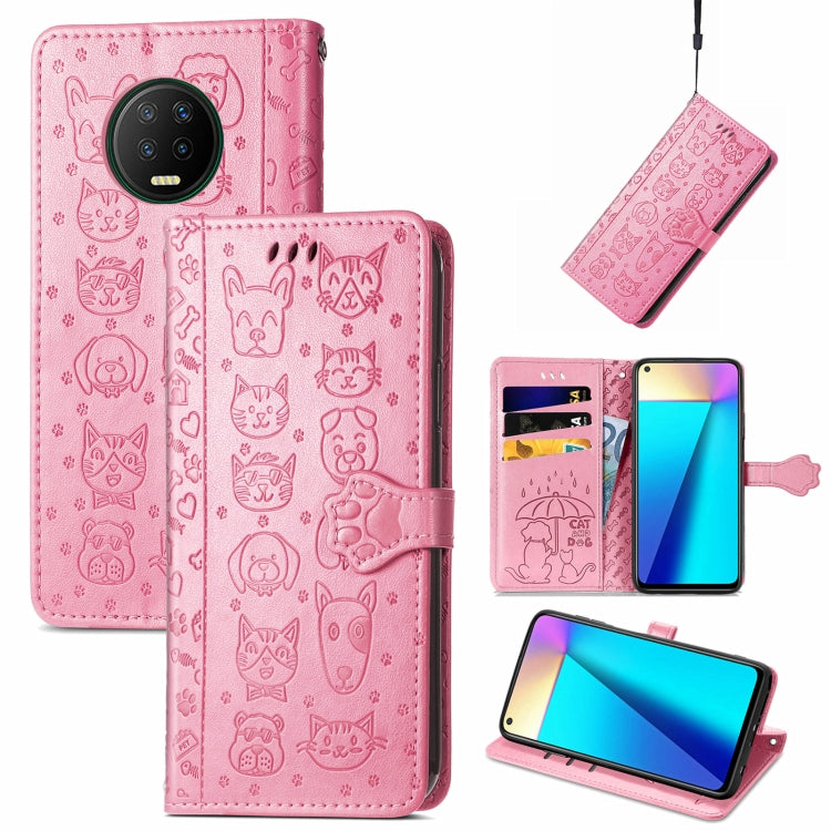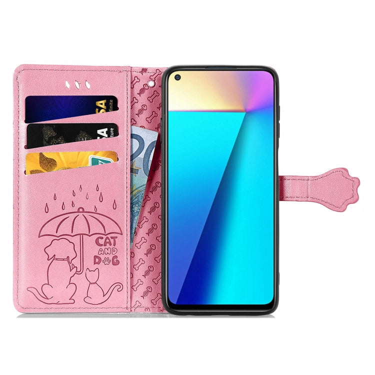 Funda Cuero Horizontal Infinix Note 7 con Estampado Gato y Perro, Soporte y Ranuras (Rosa)