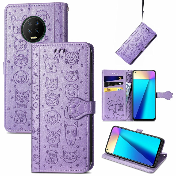 Estuche Cuero Horizontal Infinix Note 7 con Soporte, Ranuras y Cordón (Púrpura)