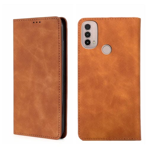 Funda de Piel Magnética Horizontal para Motorola Moto E40 (Light Brown)