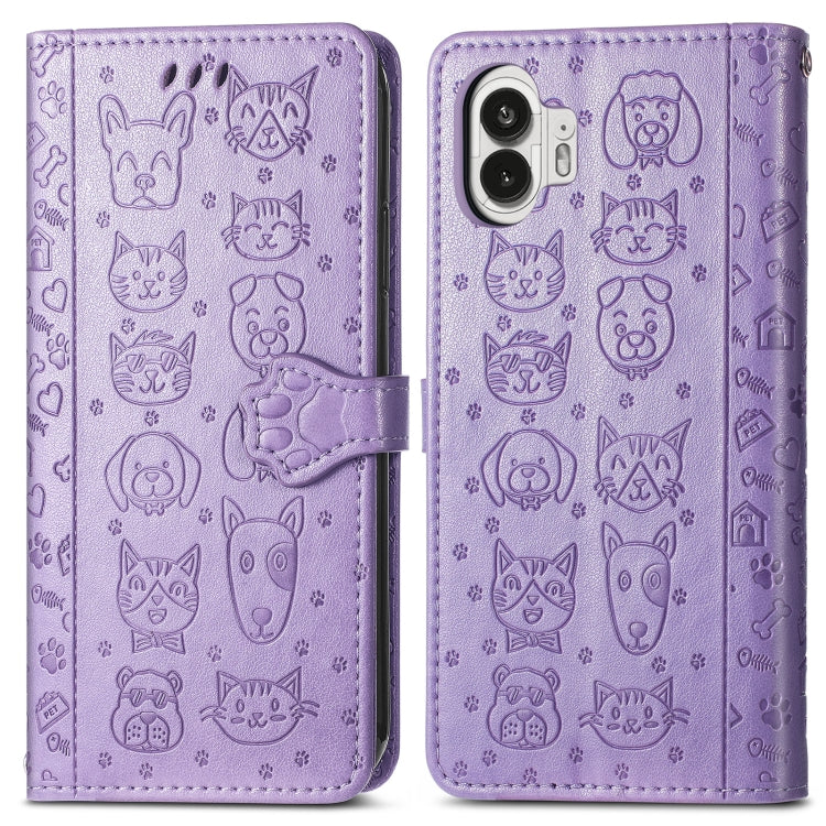 Estuche para Nothing Phone 2 Cuero En Relieve Diseño Gato y Perro (Púrpura)