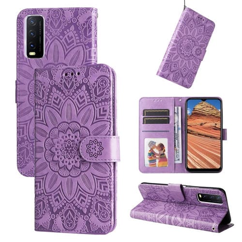 For Vivo Y20 Embossed Sunflower Leather Phone Case(Purple)