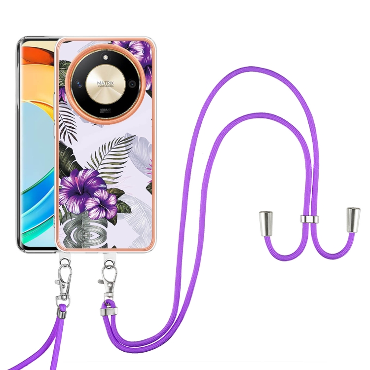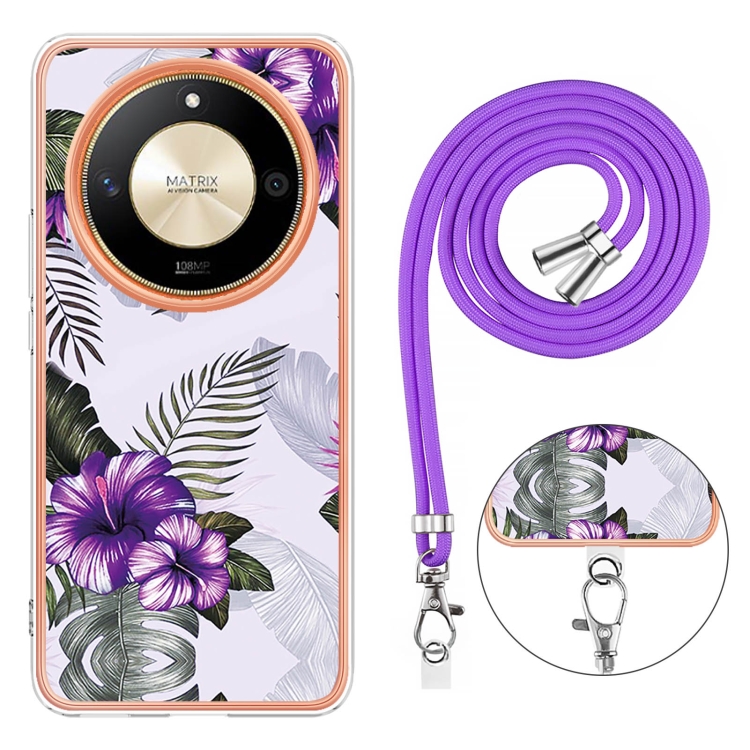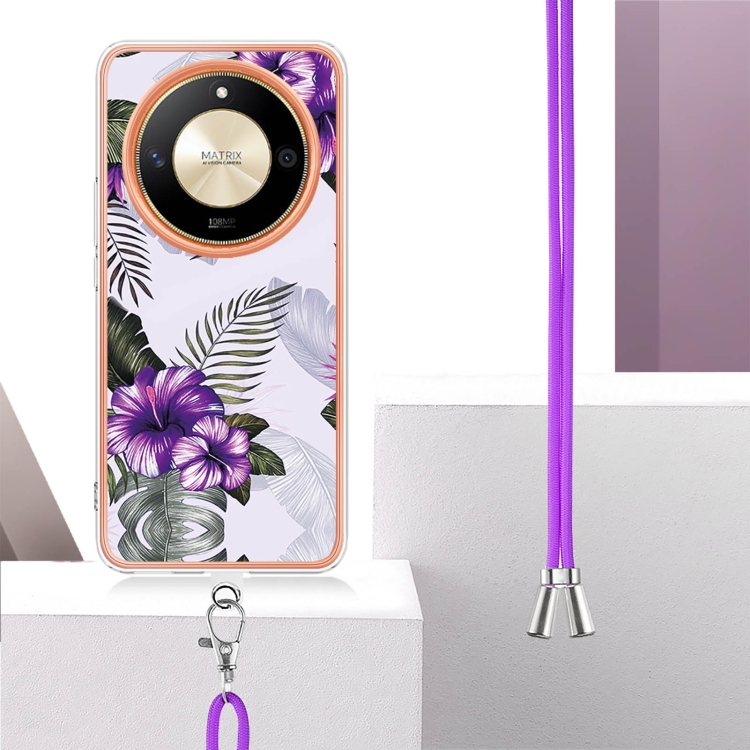 Funda a Prueba de Golpes con Patrón Galvanoplastia Imd TPU para Honor X9B con Cordón (Flor Morada)